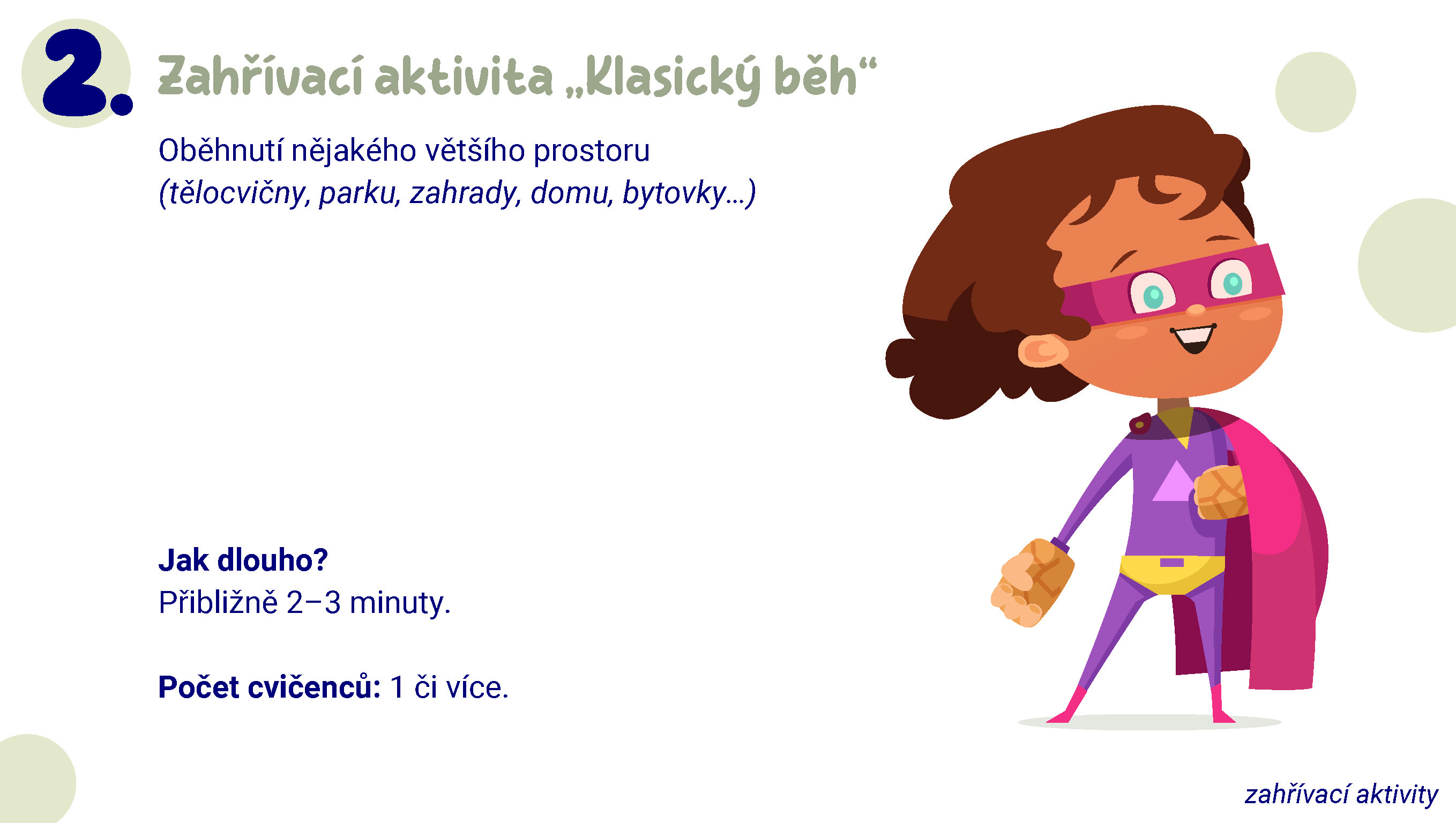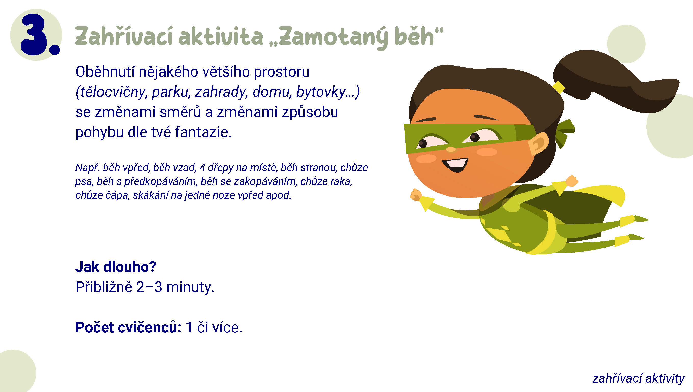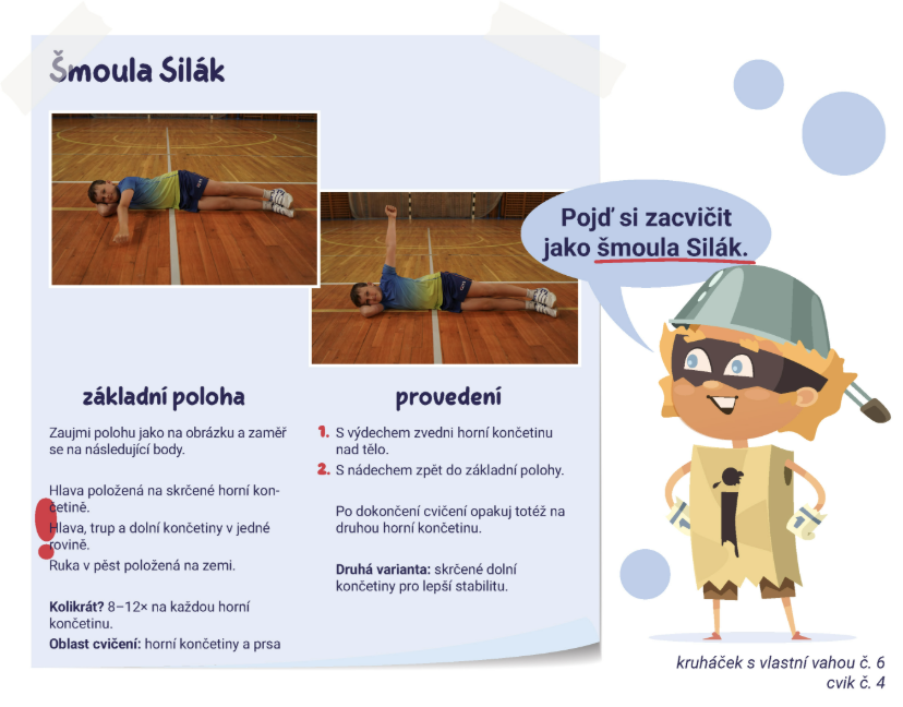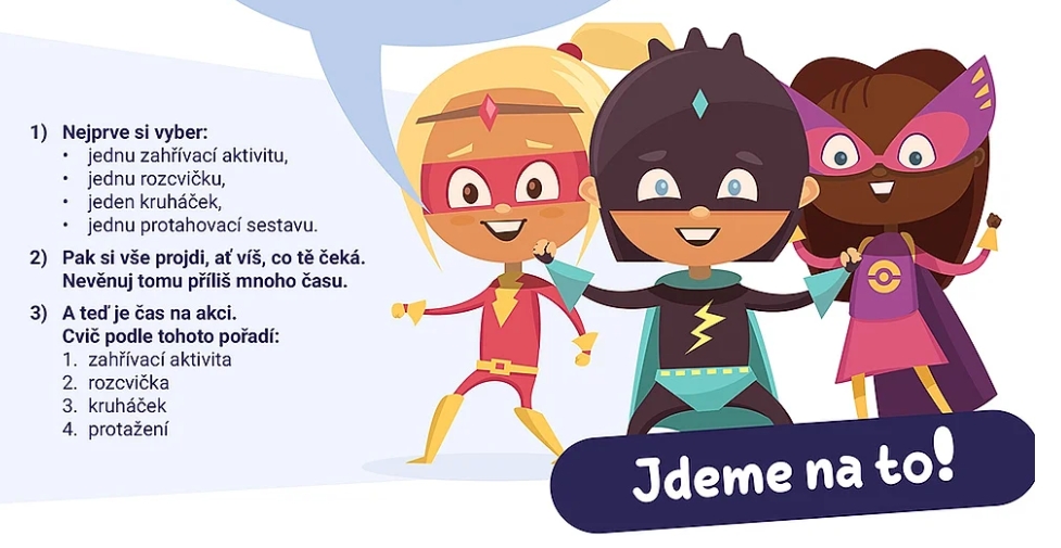Přinášíme vám, a zejména dětem, sadu pohybových aktivit pro zlepšení silových schopností. Každá sada je složena ze 4 sérií cviků, od zahřátí až po závěrečné protažení. Zahřívací aktivity, rozcvičky, kruháčky i sestavy protahovacích cviků si lze podle potřeby vytisknout a mít je tak po ruce – připravené k použití kdekoli a kdykoli (ať už na zahradě, v parku, v tělocvičně nebo doma).