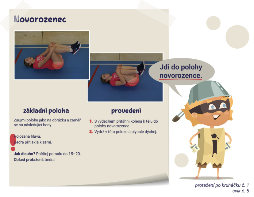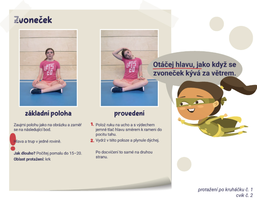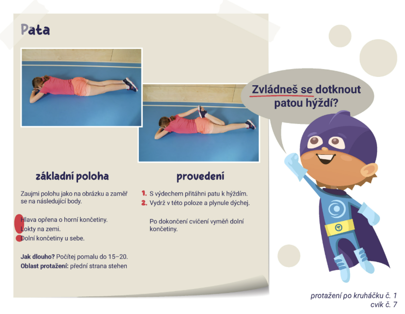Nejprve si ujasníme, které části těla budeme procvičovat a do jakých poloh můžeme tělo během cvičení uvést.